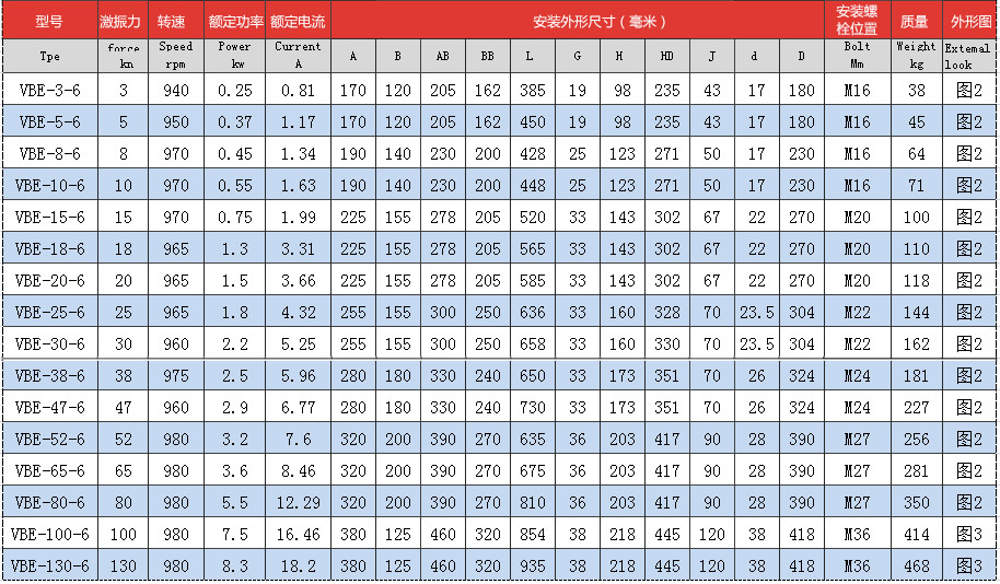 欣佳宏VBE振動電機偏心塊易調節,多電壓,功率可選。 欣佳宏VBE出口大型振動馬達采用耐高溫品牌純銅漆包線,全銅繞組,定子真空浸漆,保證絕緣等級。 欣佳宏VBE礦山專用震動電機采用特厚球墨鑄鐵外殼、散熱快、溫升低、耐震。 欣佳宏VBE振動電機機殼為精密鑄件,端蓋邊緣加有o型密封圈、全封閉結構設計,最佳防塵防潮功能。 欣佳宏VBE振動馬達采用抗振專用電源線出線防護套、防電纜線長時間振動破壞。 固定澆鑄的接線盒使VBE振動電機具有較強的防水、絕緣、安全性能。 欣佳宏VBE系列震動電機為出口大型振動電機的代表,上市以來深受國內外客戶的一致好評; | ![]() |